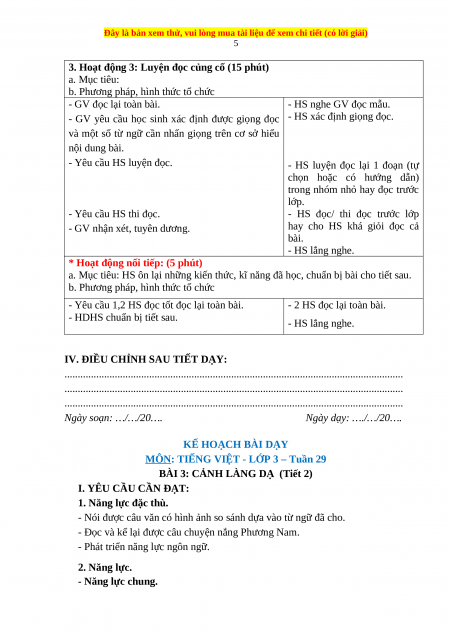MÔN: TIẾNG VIỆT - LỚP 3 – Tuần 29