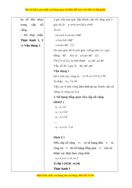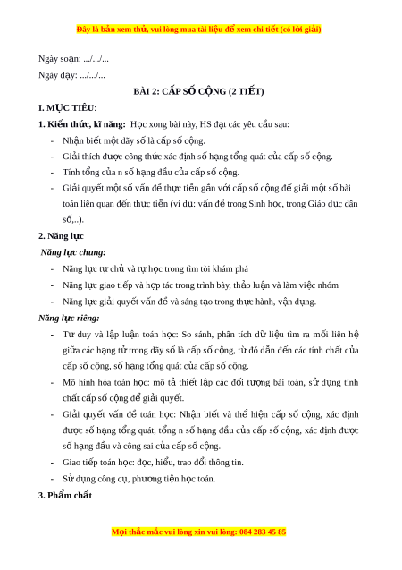 Đây là bản xem th , vu ử i lòng mua tài li u ệ đ xe ể m chi ti t ế (có l i ờ gi i ả ) Ngày so n ạ : .../.../... Ngày d y ạ : .../.../... BÀI 2: C P Ấ S Ố C N Ộ G (2 TI T) Ế I. MỤC TIÊU: 1. Ki n ế th c