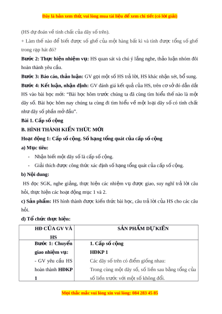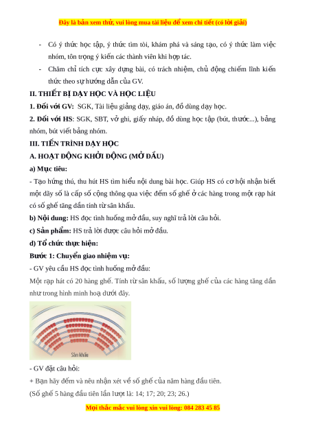 Đây là bản xem th , vu ử i lòng mua tài li u ệ đ xe ể m chi ti t ế (có l i ờ gi i ả ) (HS d ự đoán v ề tính ch t ấ c a ủ dãy s ố trên). + Làm thế nào để bi t ế đ c ượ số ghế c a ủ m t ộ hàng b t ấ kì và tính đ c ượ t n ổ g s ố ghế trong r p ạ hát đó? Bư c ớ 2: Th c ự hi n ệ nhi m ệ v :