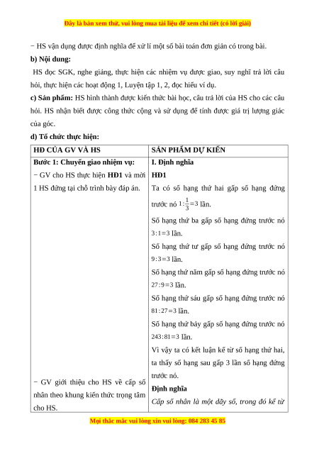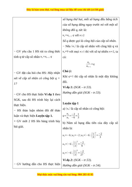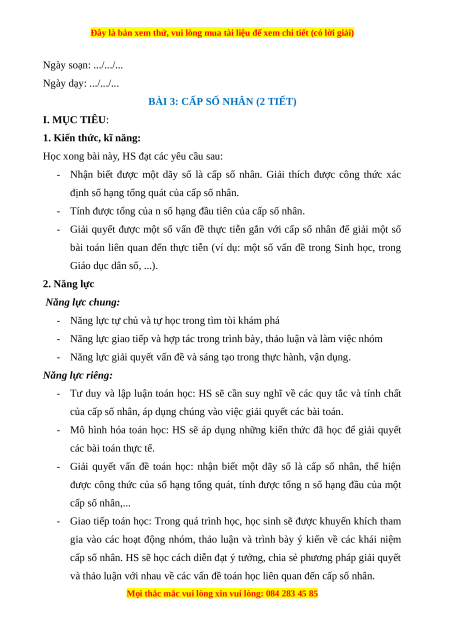 BÀI 3: CẤP SỐ NHÂN (2 TIẾT) I. MỤC TIÊU: