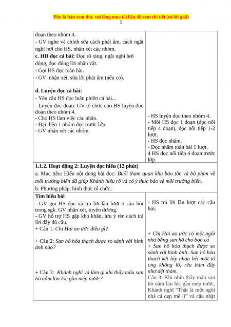 a. Mục tiêu: Hiểu nội dung bài đọc: Buổi tham quan khu bảo tồn và bộ phim về