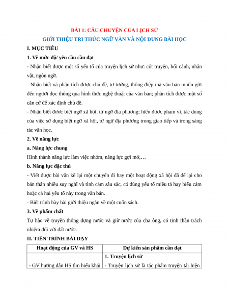 GIỚI THIỆU TRI THỨC NGỮ VĂN VÀ NỘI DUNG BÀI HỌC I. MỤC TIÊU
