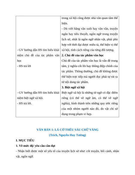 VĂN BẢN 1: LÁ CỜ THÊU SÁU CHỮ VÀNG