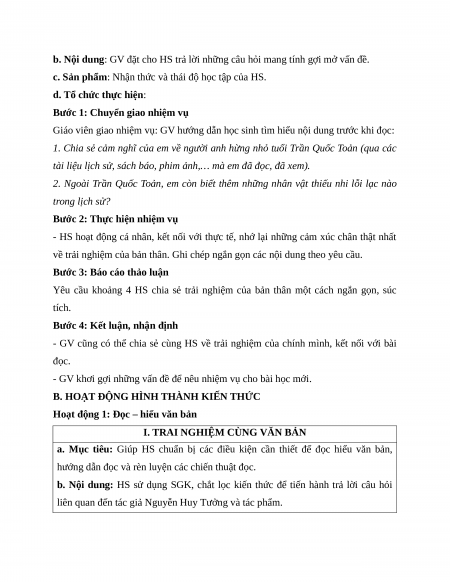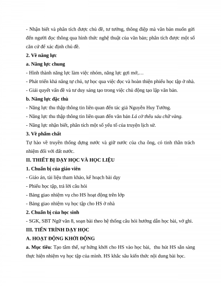 (Trích, Nguyễn Huy Tưởng) I. MỤC TIÊU