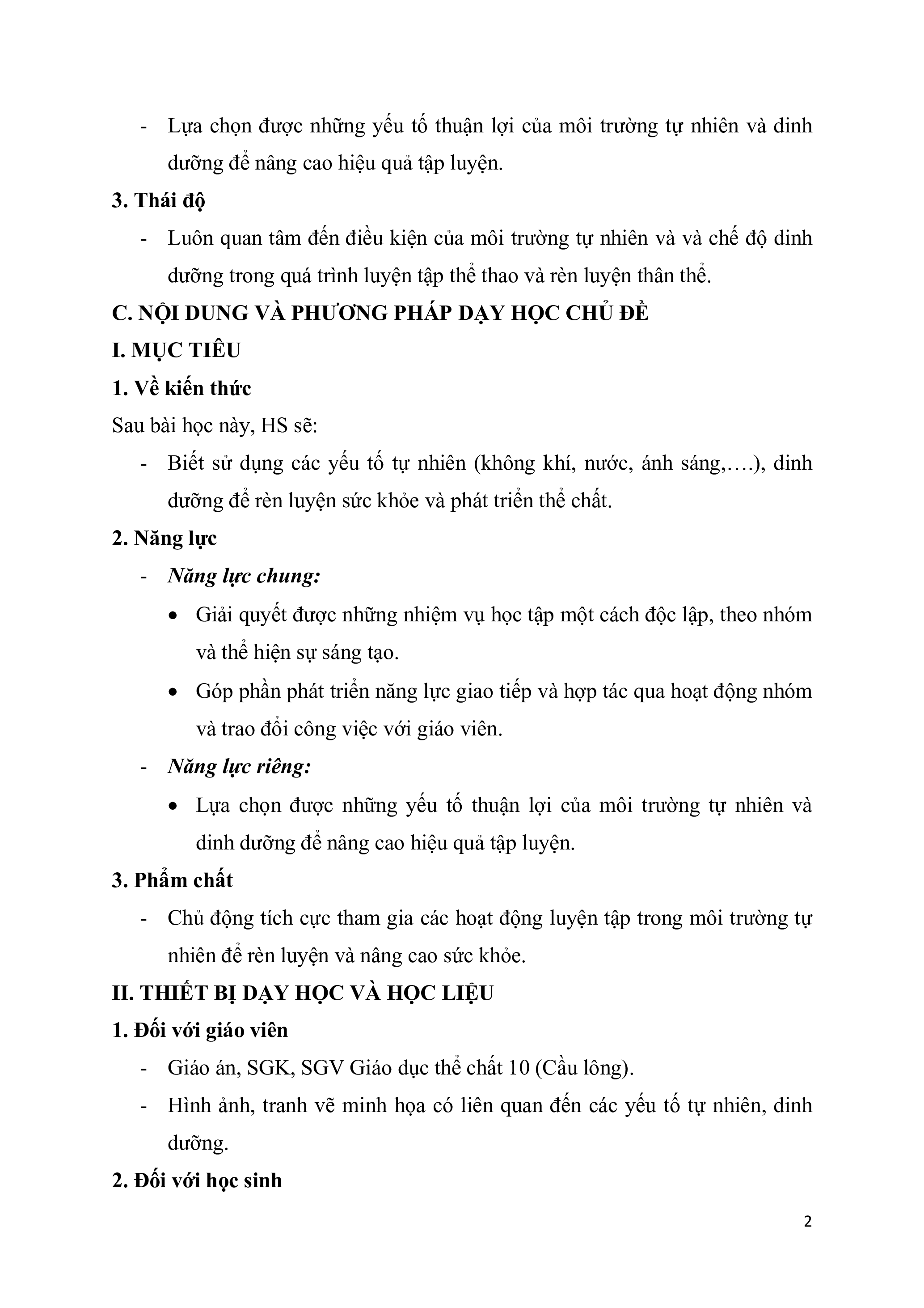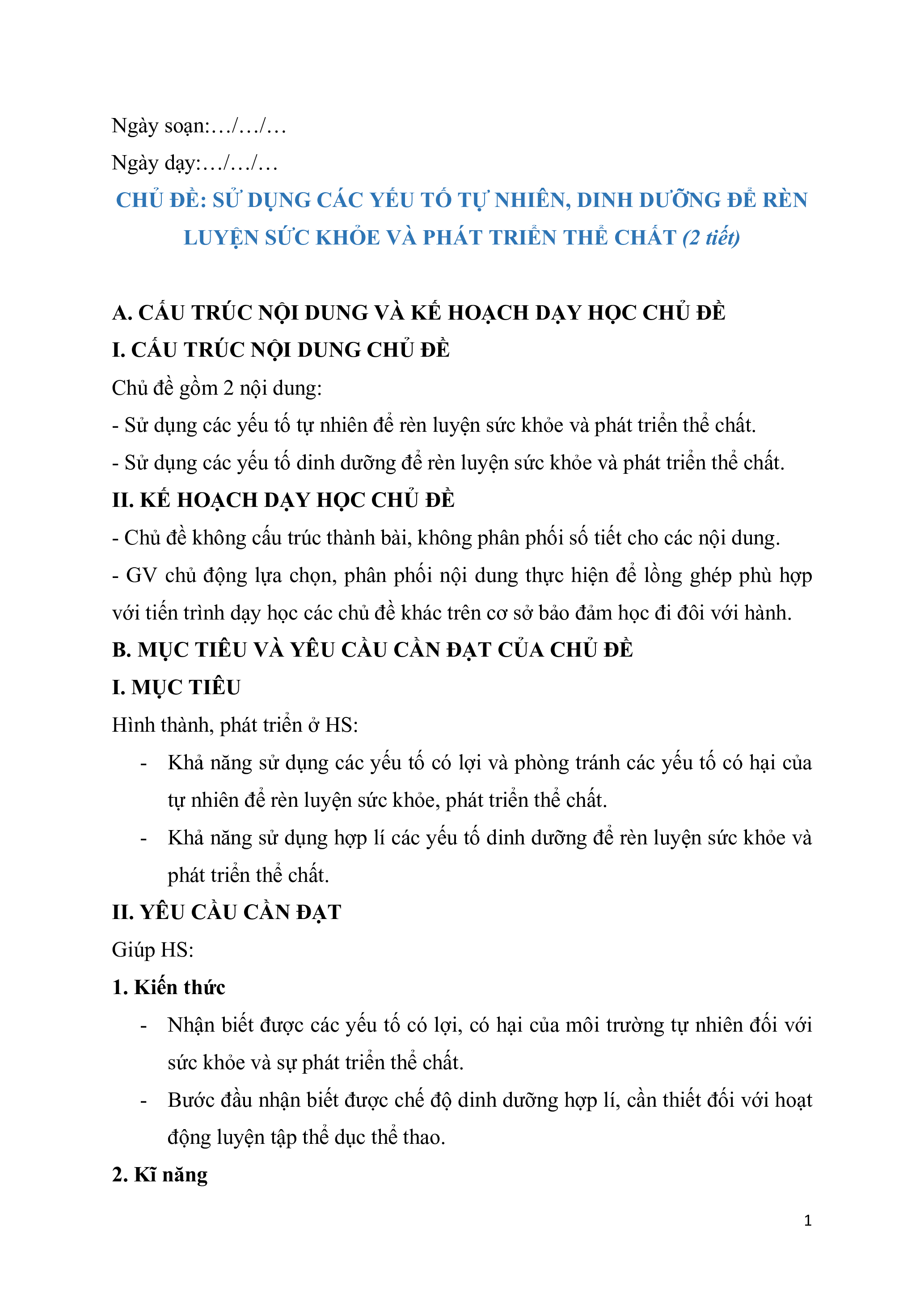 CHỦ ĐỀ: SỬ DỤNG CÁC YẾU TỐ TỰ NHIÊN, DINH DƯỠNG ĐỂ RÈN