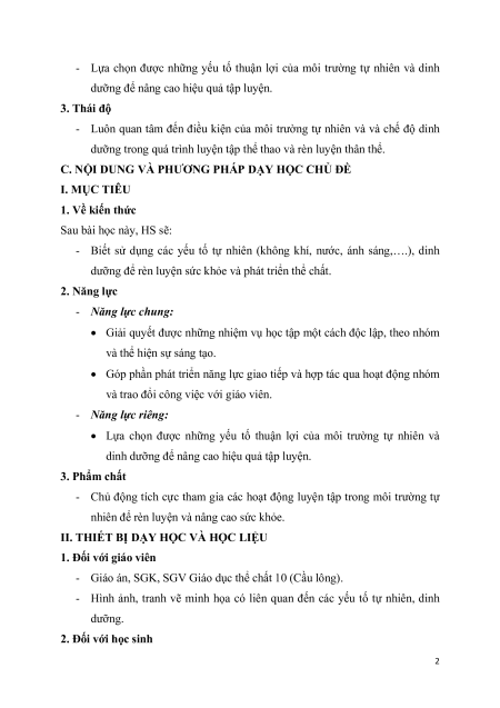 dưỡng để rèn luyện sức khỏe và phát triển thể chất. 2. Năng lực