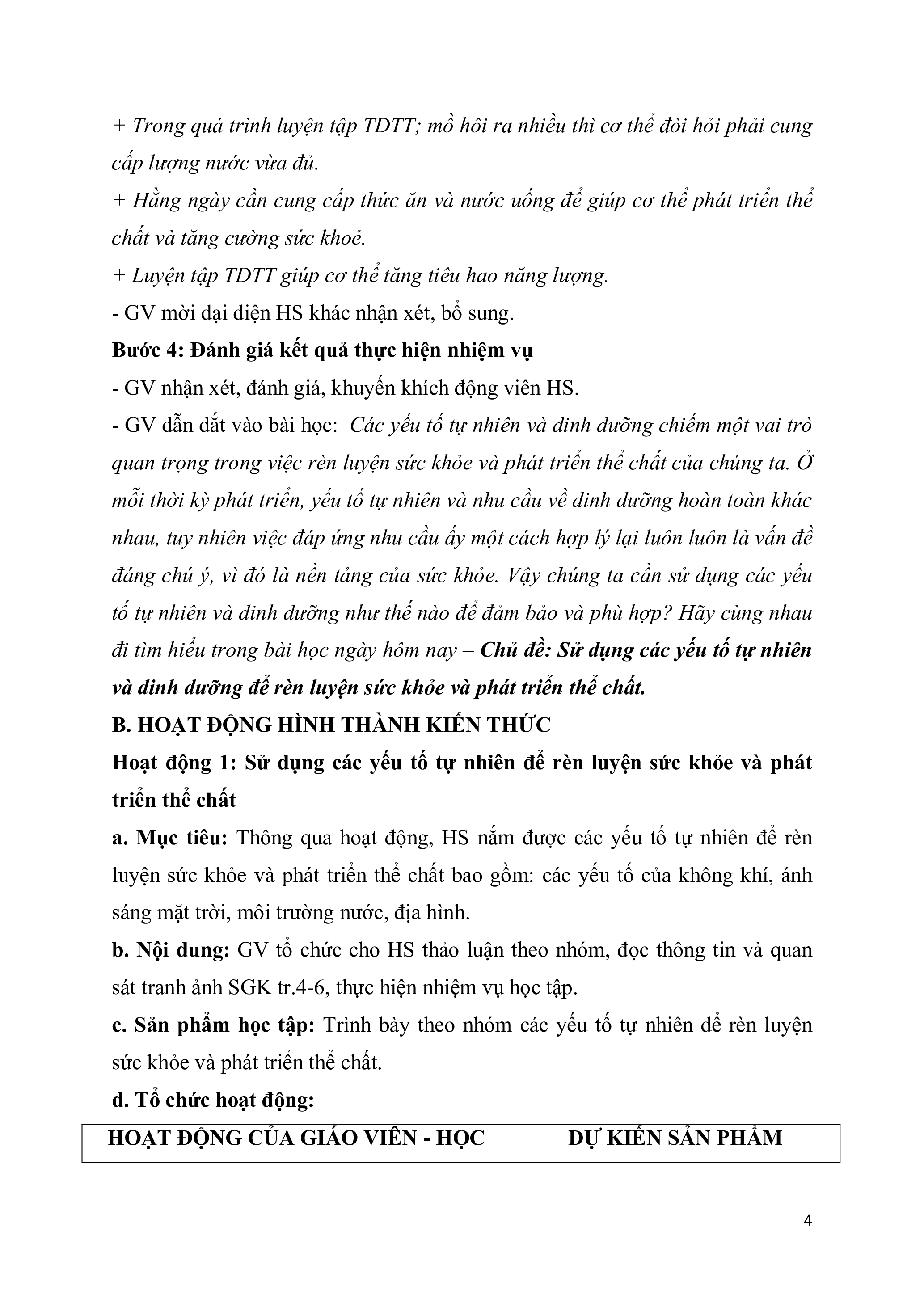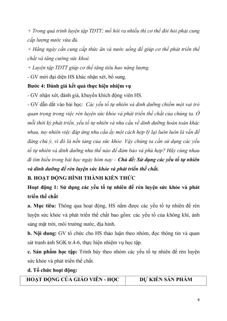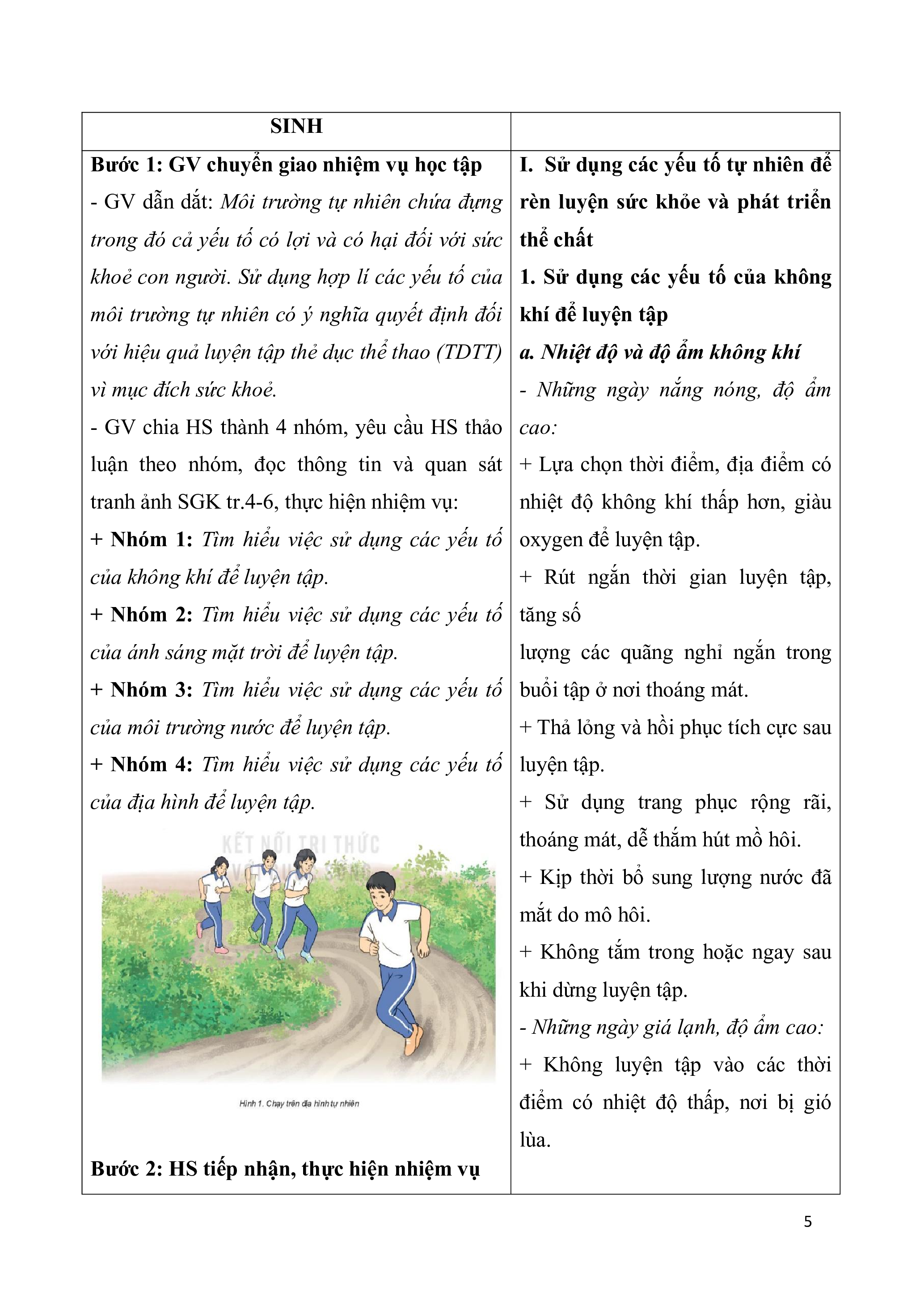 Hoạt động 1: Sử dụng các yếu tố tự nhiên để rèn luyện sức khỏe và phát triển thể chất