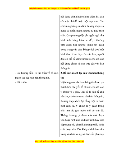 - GV hướng dẫn HS tìm hiểu về bố cục, 2. Bố cục, mạch lạc của văn bản thông
