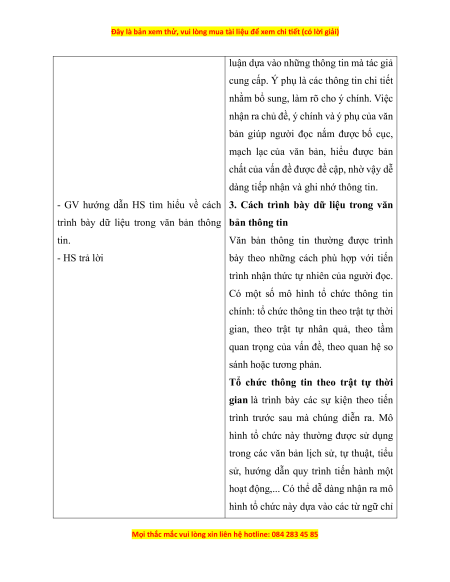 - GV hướng dẫn HS tìm hiểu về cách 3. Cách trình bày dữ liệu trong văn