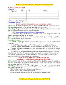 III. TIẾN TRÌNH DẠY HỌC 1. Ổn định: Ngày dạy Lớp Sĩ số Ghi chú