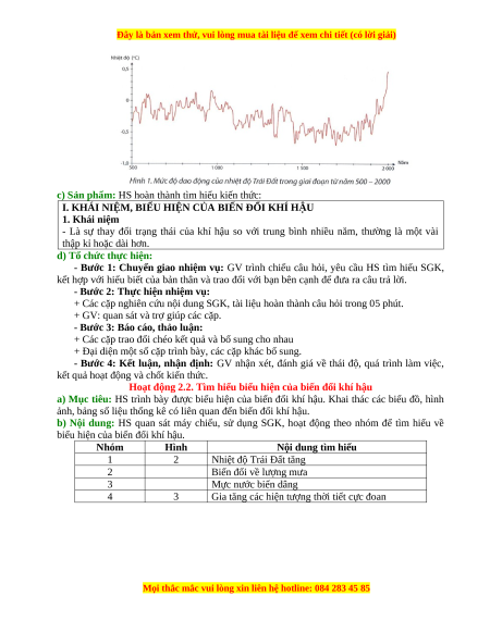 Giáo án CĐ Biến đổi khí hậu Địa lí 10 Chân trời sáng tạo