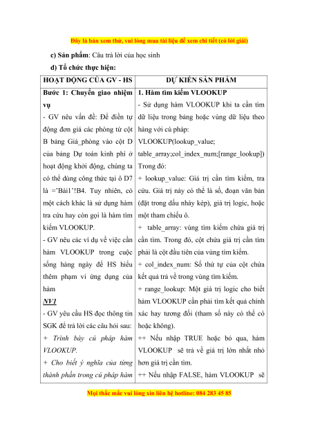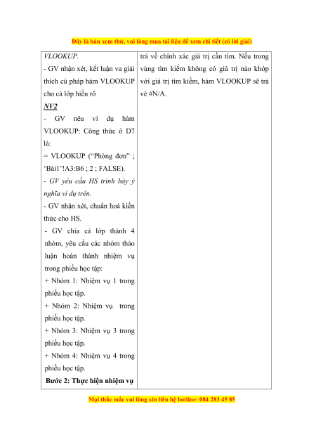 Đây là bản xem thử, vui lòng mua tài liệu để xem chi tiết (có lời giải) VLOOKUP.