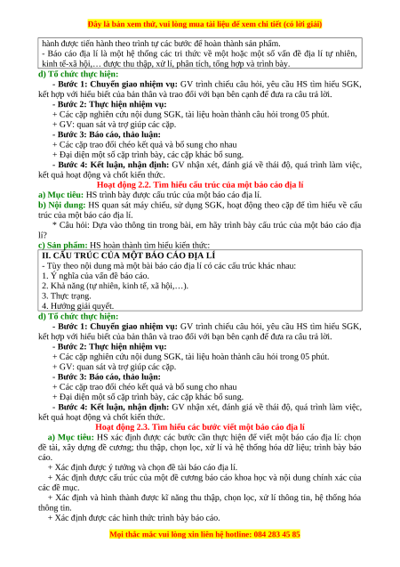 Hoạt động 2.2. Tìm hiểu cấu trúc của một báo cáo địa lí