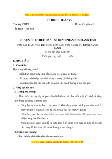 Đây là bản xem thử, vui lòng mua tài liệu để xem chi tiết (có lời giải) KẾ HOẠCH BÀI DẠY Trường THPT Họ và tên giáo viên: Tổ: Toán - Tin học