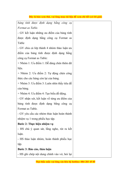 - GV giới thiệu công cụ Format as Table cho cả lớp nghe. NV3