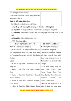 + Sau khi hoàn tất nọi dung cho các bảng, HS bắt đầu sử dụng công cụ Format