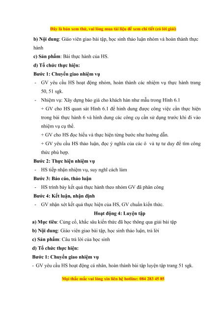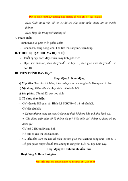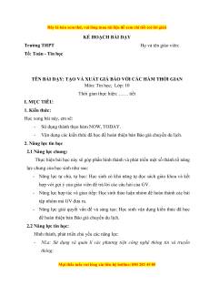 Đây là bản xem thử, vui lòng mua tài liệu để xem chi tiết (có lời giải) KẾ HOẠCH BÀI DẠY Trường THPT Họ và tên giáo viên: Tổ: Toán - Tin học