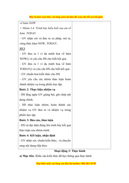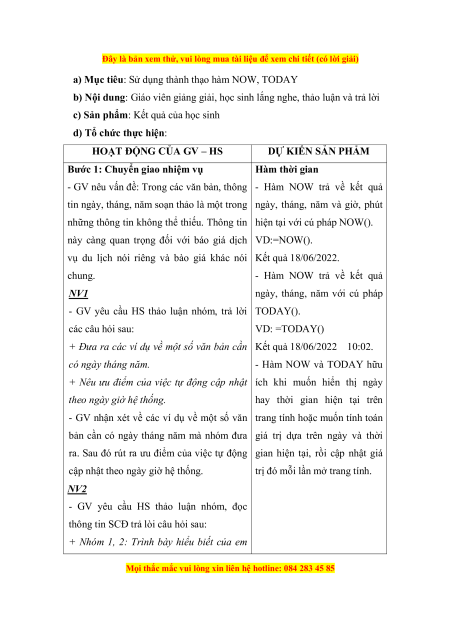 Đây là bản xem thử, vui lòng mua tài liệu để xem chi tiết (có lời giải) về hàm NOW.