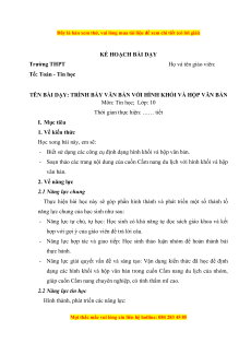 Đây là bản xem thử, vui lòng mua tài liệu để xem chi tiết (có lời giải) KẾ HOẠCH BÀI DẠY Trường THPT Họ và tên giáo viên: Tổ: Toán - Tin học