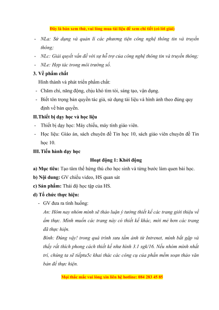 - Học liệu: Giáo án, sách chuyên đề Tin học 10, sách giáo viên chuyên đề Tin