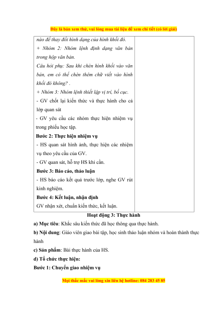 a) Mục tiêu: Biết sử dụng các công cụ định dạng hình khối và hộp văn bản.