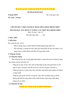 Đây là bản xem thử, vui lòng mua tài liệu để xem chi tiết (có lời giải) KẾ HOẠCH BÀI DẠY Trường THPT Họ và tên giáo viên: Tổ: Toán - Tin học