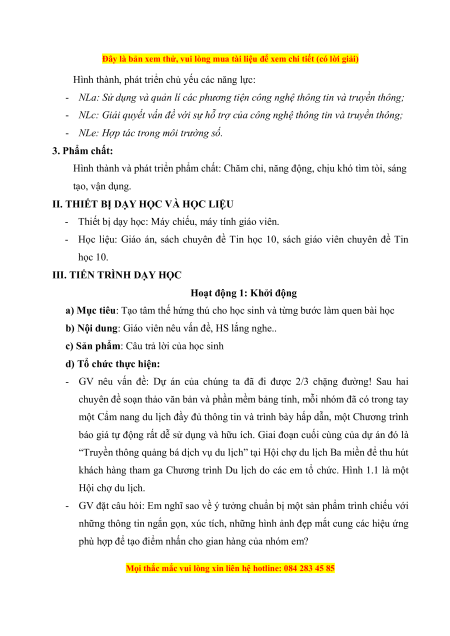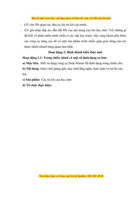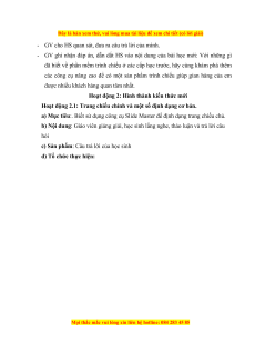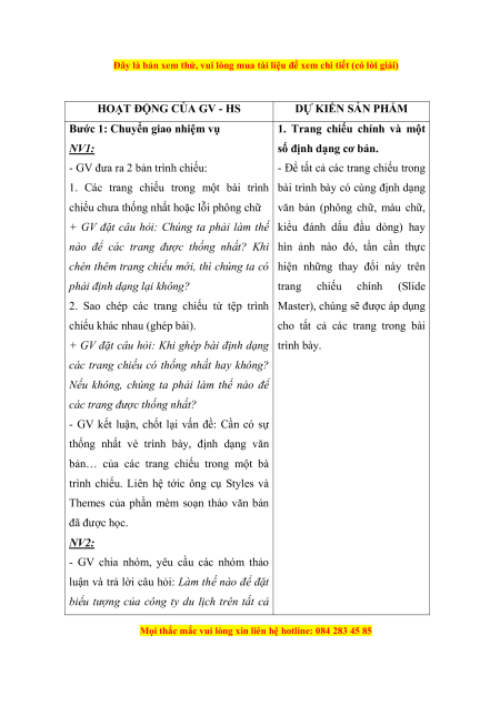 Đây là bản xem thử, vui lòng mua tài liệu để xem chi tiết (có lời giải) HOẠT ĐỘNG CỦA GV - HS DỰ KIẾN SẢN PHẨM