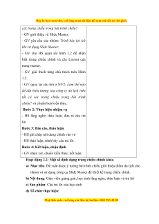 Master để thiết kế trang chiếu chính, thiết kế được mẫu trang chiếu dùng chung cho cả nhóm. 2.2 Năng lực tin học:
