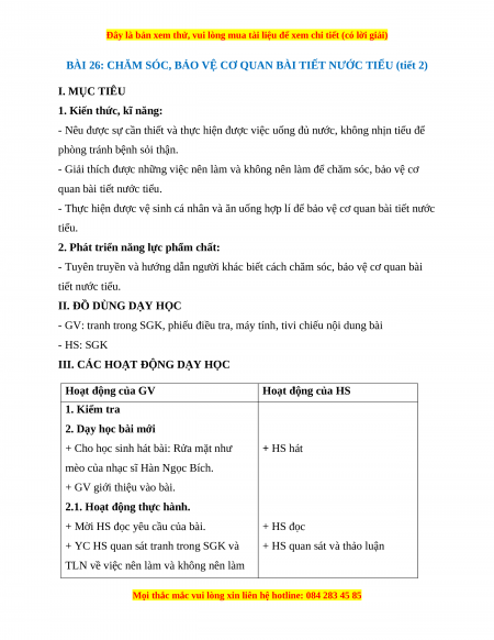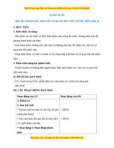 BÀI 26: CHĂM SÓC, BẢO VỆ CƠ QUAN BÀI TIẾT NƯỚC TIỂU (tiết 1)