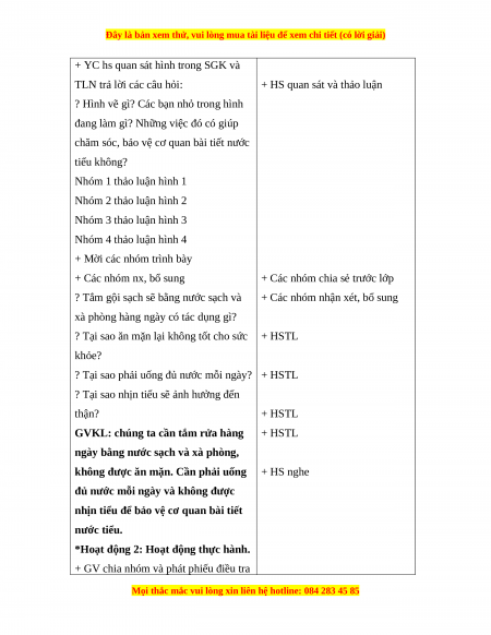Giáo án Chăm sóc, bảo vệ cơ quan bài tiết nước tiểu Tự nhiên xã hội 2 Kết nối tri thức