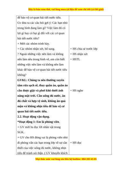 sóc,bảo vệ cơ quan bài tiết nước tiểu + HSTL