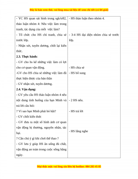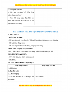 Giáo án Chăm sóc, bảo vệ cơ quan vận động Tự nhiên xã hội 2 Kết nối tri thức