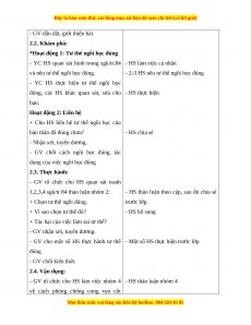 - GV cho một số HS thực hành tư thế - Một số HS thực hiện trước lớp đúng - GV chốt kiến thức 2.4. Vận dụng: