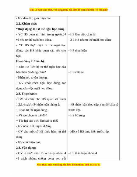 - HS nêu được các yêu cầu về tư thế ngồi học đúng chống cong vẹo cột sống