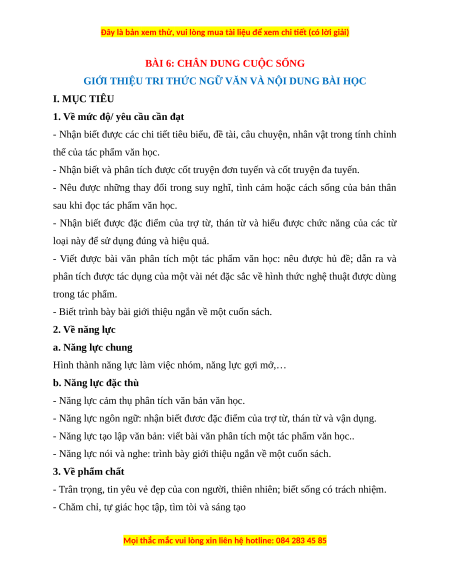 BÀI 6: CHÂN DUNG CUỘC SỐNG