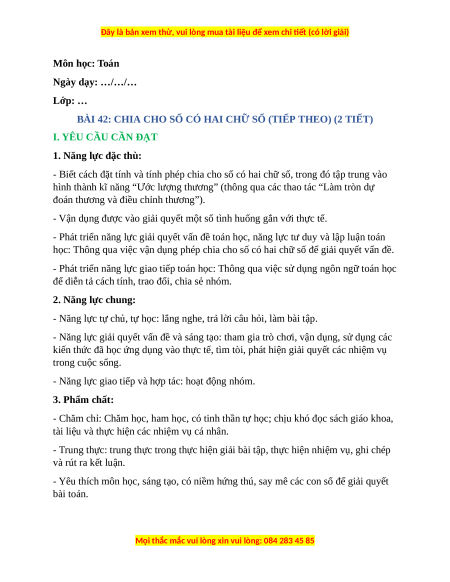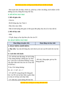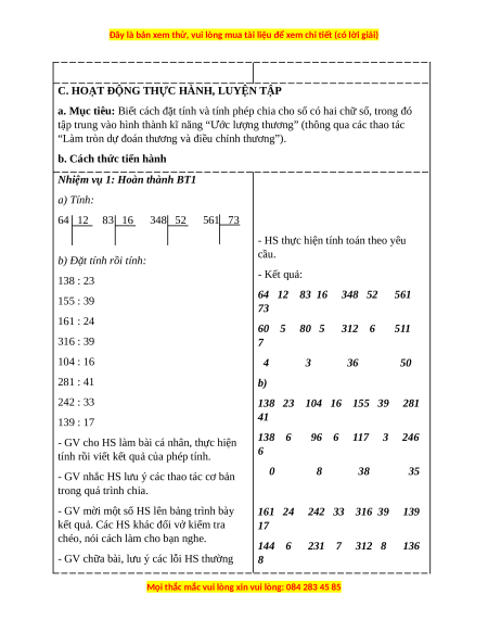 - Biết cách đặt tính và tính phép chia cho số có hai chữ số, trong đó tập trung vào