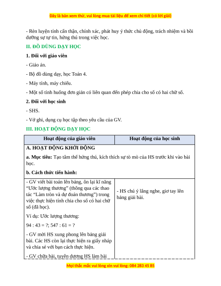 Giáo án Chia cho số có hai chữ số (tiếp theo) Toán lớp 4 Cánh diều
