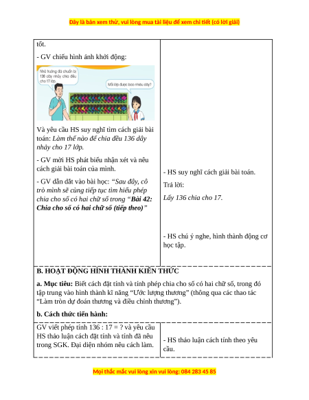 chia cho số có hai chữ số trong “Bài 42: Lấy 136 chia cho 17.