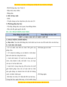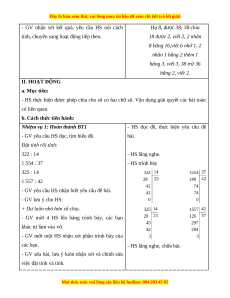 - Biết thực hiện cách chia cho số có hai chữ số. vận dụng vào giải các bài tập và bài toán