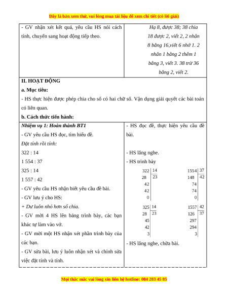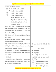 - HS thực hiện được phép chia cho số có hai chữ số. Vận dụng giải quyết các bài toán