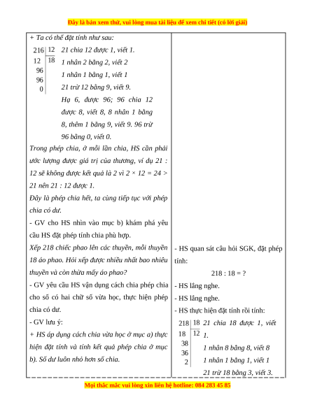 thuyền và còn thừa mấy áo phao? 218 : 18 = ?