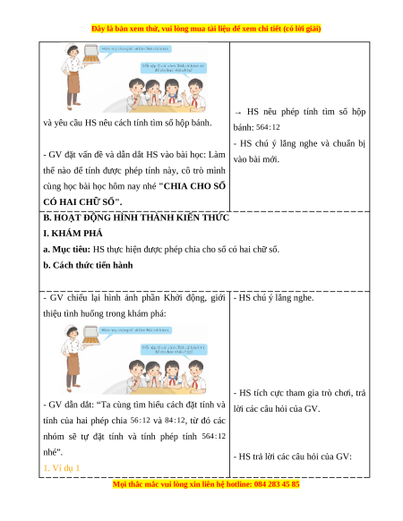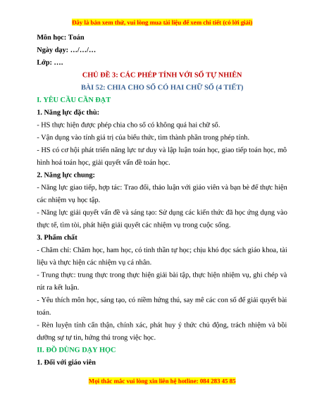 BÀI 52: CHIA CHO SỐ CÓ HAI CHỮ SỐ (4 TIẾT)