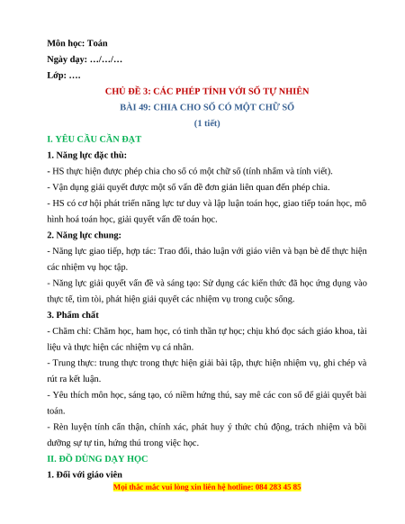 BÀI 49: CHIA CHO SỐ CÓ MỘT CHỮ SỐ