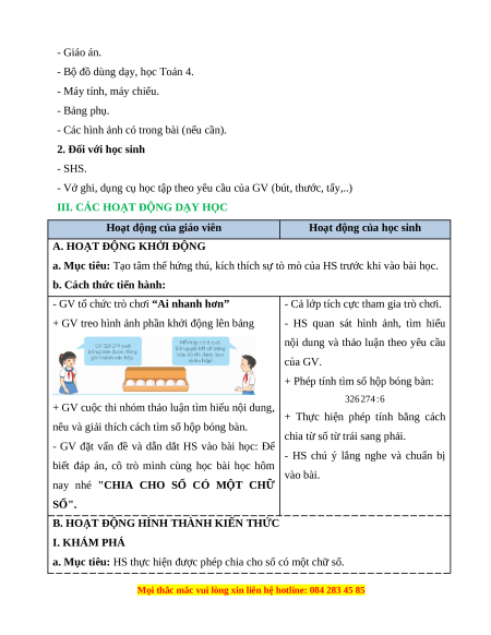 Giáo án Chia cho số có một chữ số Toán lớp 4 Chân trời sáng tạo