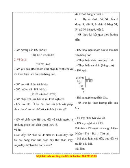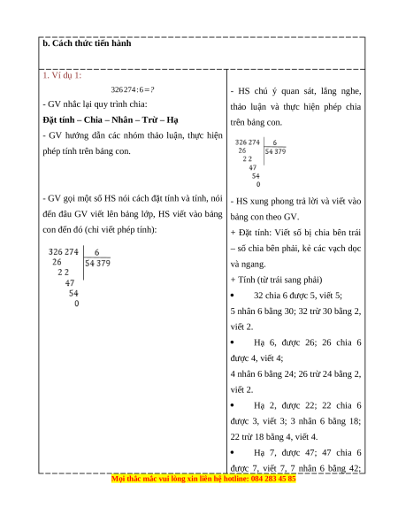 b. Cách thức tiến hành 1. Ví dụ 1: 326 274 :6=?