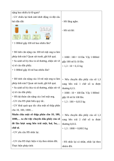 đó lần lượt sang bên trái một, hai, ba,… thương 0,013. chữ số. + 1,3 : 1000 = 0,0013 kg