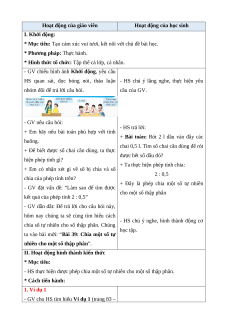 Giáo án Chia một số tự nhiên cho một số thập phân Toán lớp 5 Chân trời sáng tạo