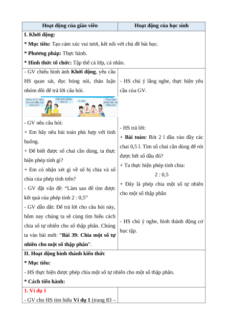 BÀI 39. CHIA MỘT SỐ TỰ NHIÊN CHO MỘT SỐ THẬP PHÂN (1 TIẾT)