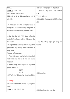 - HS chú ý lắng nghe và thực hiện: Ví dụ 1: 2 : 0,5 = ?