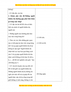 - HS chia sẻ những quan sát của mình về người khuyết tật; thực hiện hoạt động